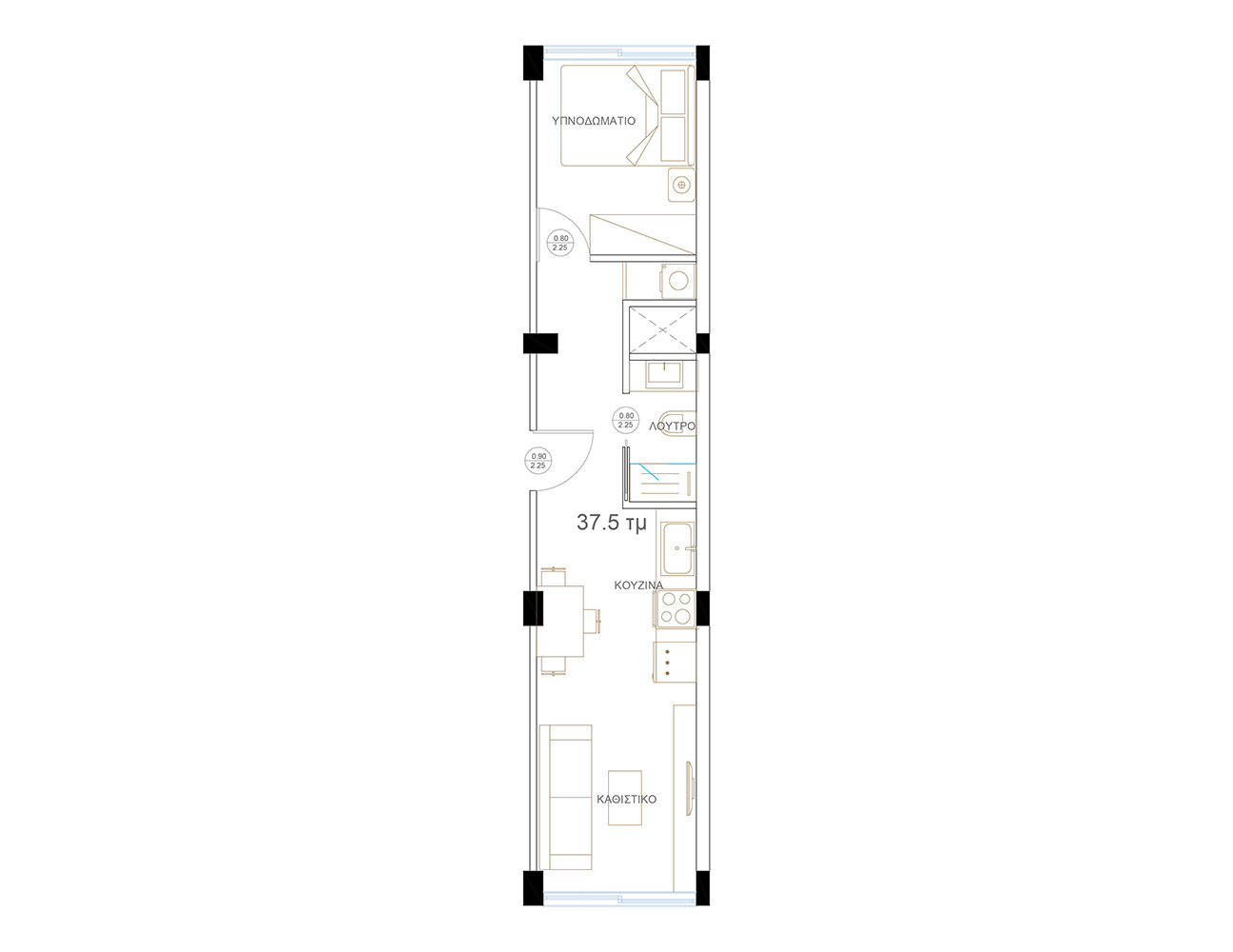 Thanks to its proximity to the Port of Piraeus, the project provides easy access to city transportation as well as the Greek islands. Metro stations, bus stops, seaside walking paths, and daily amenities are all within walking distance. Situated on the 3rd floor of an eight-storey mixed-use building, Filonos Piraeus consists of four private apartments, offering a calm and functional living environment with a limited number of residences. The apartments are delivered fully furnished and turnkey, featuring modern kitchens, smart home infrastructure, A energy class systems, and newly renovated mechanical and plumbing installations.